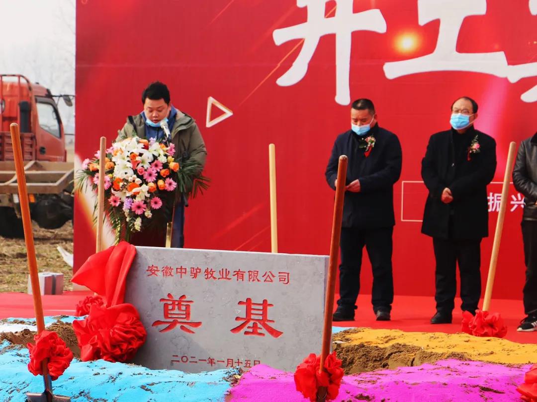 1月15日上午9時,匯鑫集團旗下,安徽中驢牧業(yè)毛驢產業(yè)園開工建設奠基儀式在潁上縣黃橋鎮(zhèn)舉行。潁上縣農村農業(yè)局局長王寅,匯鑫集團董事長程學勇,黃橋鎮(zhèn)黨委書記劉國東、鎮(zhèn)長王卓,匯鑫集團副總經(jīng)理王坤,中驢牧業(yè)總經(jīng)理張青等領導出席開工奠基儀式。