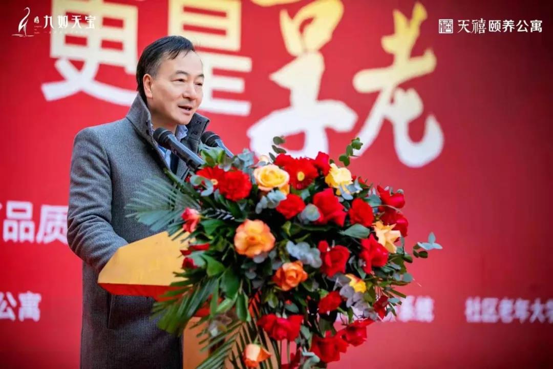 慶典儀式上,匯鑫集團(tuán)董事長程學(xué)勇首先致辭。他說,匯鑫集團(tuán)深耕阜陽二十六年,為阜陽城市建設(shè)和發(fā)展作出重大貢獻(xiàn);九如天禧康養(yǎng)項目是匯鑫集團(tuán)精心研磨的匠心之作,與上 海親和源集團(tuán)聯(lián)袂打造,建筑面積約五萬平米,總投資約3.6億,擁有精裝頤養(yǎng) 公寓、康養(yǎng)醫(yī)院、老年健身中心、老年娛樂中心、老年大學(xué)、演藝中心、綠色養(yǎng)生食堂等。更重要的是她移植了中國養(yǎng)老服務(wù)行業(yè)典范——上海親和源的服務(wù)理念和管理模式,使居住在這里的老年人生活有人關(guān)心,健康有人操心,老有所依 ,老有所樂 ,老有所學(xué),老有所為,從而讓老年生活健康、快樂、精彩。程董事長最后表示,相信在社會各界朋友關(guān)心和幫助下,匯鑫天禧項目一定會成 為太和乃至安徽高端養(yǎng)老項目的典范之作。